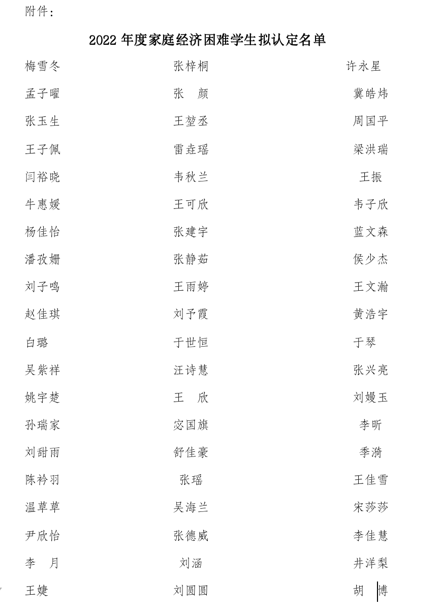 根据《关于评选2022年度国家奖学金、国家励志奖学金、国家助学金的通知》(江海大校办[2022]63 号)和《威廉希尔国家助学金实施办法(修订)》(江海大[2021]129号)等文件要求等文件有关规定,经员工申请,班主任同意,公司评审小组评议,认定244名员工为家庭经济困难员工并建立困难生档案,现面向全院进行公示。公示期5天。如有异议,请于公示期间以书面形式向公司反映。