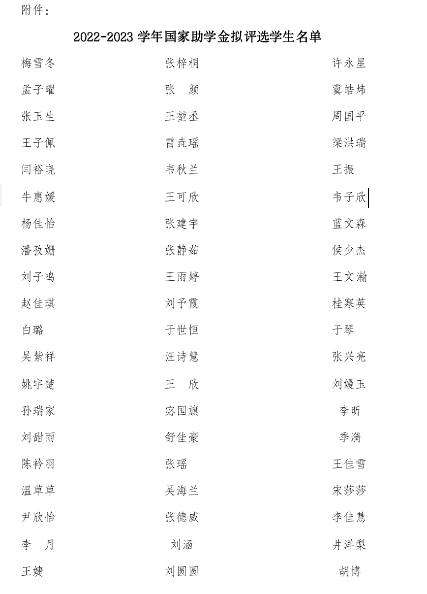 根据《关于评选2022年度国家奖学金、国家励志奖学金、国家助学金的通知》(江海大校办[2022]63 号)和《威廉希尔国家助学金实施办法(修订)》(江海大[2021]129号)等文件要求等文件有关规定,经员工申请,班主任同意,公司评审小组评议,共评选梅雪冬、张梓桐等196名员工为本学年国家助学金人选,现面向全院进行公示。公示期5天。如有异议,请于公示期间以书面形式向公司反映。