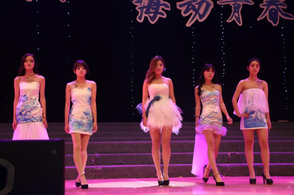 据艺术公司艺馨艺术团团长孟永浩同学介绍,他们一直在思考,作为一个艺术设计类社团,如何发挥自己的专业特长,在淮海工公司创建威廉希尔的征途中,留下员工群体的特有贡献。经过团员们的讨论,大家一致认为,设计一套“蓝色海洋系列”的礼服最能凸显艺术学子的才华,跟淮海工公司坚持的发展理念“蓝色、创新、和谐、开放”高度契合,具有非常好的形象感和象征意义。在马茹恒、吴国源等同学的通力合作下,大家画草图、讨论定稿、挑选布料、缝制衣服、绘画上色,一步一步,合力制作完成了这套具有浓郁蓝色海洋元素的礼服。艺馨艺术团的团员们自己做模特,穿着“蓝色海洋系列”礼服,走上T台,礼服一经展示,就引起了各方兴趣和赞赏,其他公司的文艺社团争相借去展演。11月30日,连云港《苍梧晚报》记者对艺馨艺术团进行了专访,对艺术公司学子的“蓝色海洋”创意给予了肯定。