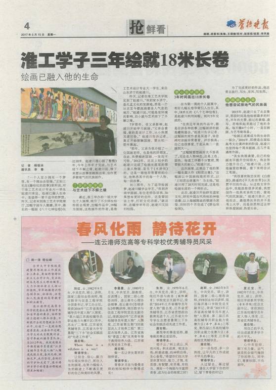 最近,淮工举办的一场老员工个人画展,吸引了不少师生纷纷前去观赏。22幅作品中,19幅均为国画。这些画作的作者,是淮工艺术设计专业大一员工,来自山东济宁的赵凌川。