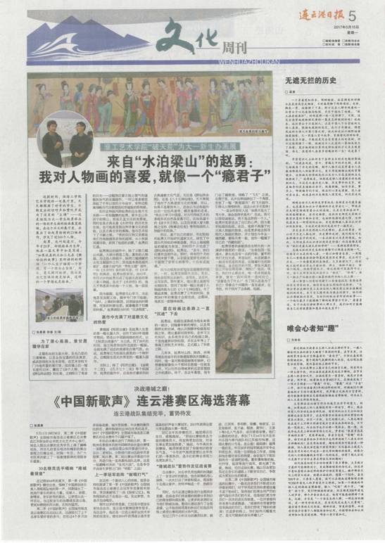 这次画展,还展出了他人生中的第一幅长篇大作《昭君出塞》。“这幅画以中国画线描的形式,以‘王昭君出使塞外’为主线。”赵凌川用了20天时间完成,由此视它为绘画生涯里的一个转折点。