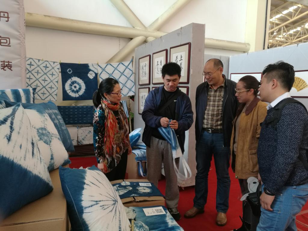 10月20日,连云港市第九届文博会在振兴花卉城开幕,艺术公司师生的百余件作品参展。参展作品涉及草木扎染、水粉、国画、书法、剪纸、陶瓷艺术等多个门类,以传统手艺为载体将传统与现代、设计与技艺结合起来,坚守艺术理想,传承民族工艺,传达工匠精神,给观者以耳目一新的感觉。这是公司文化创意类作品第一次亮相市文博会,作品得到了与会专业人士的关注和认可。