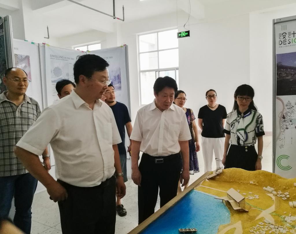 7月4日下午,公司党委书记赵炳起、董事长宁晓明、副董事长金芙蓉来到筑海楼二楼展厅,在艺术公司党政领导的陪同下,参观了艺术公司2018届毕业设计作品展。校领导对艺术公司毕业设计作品给予了高度评价。