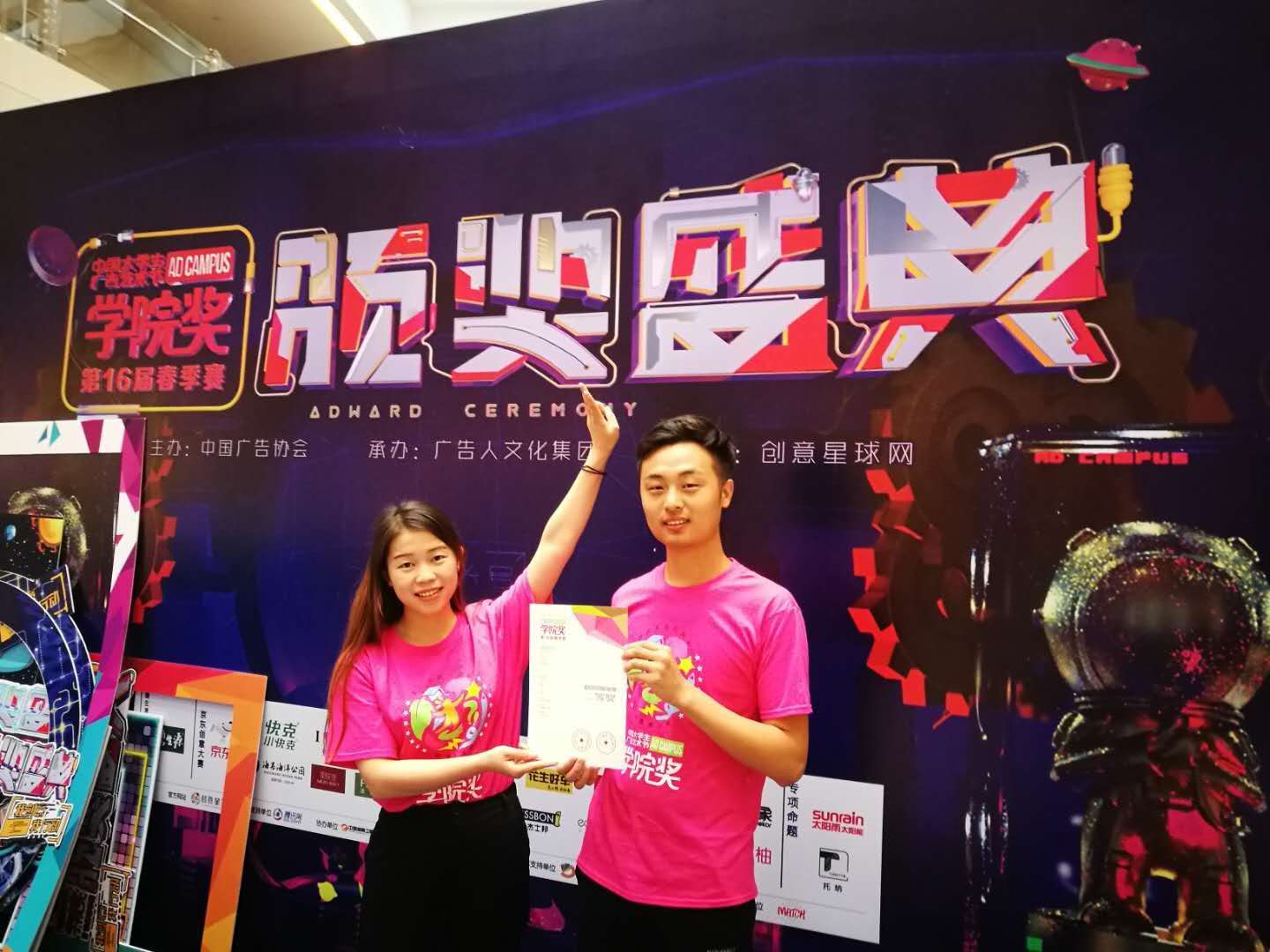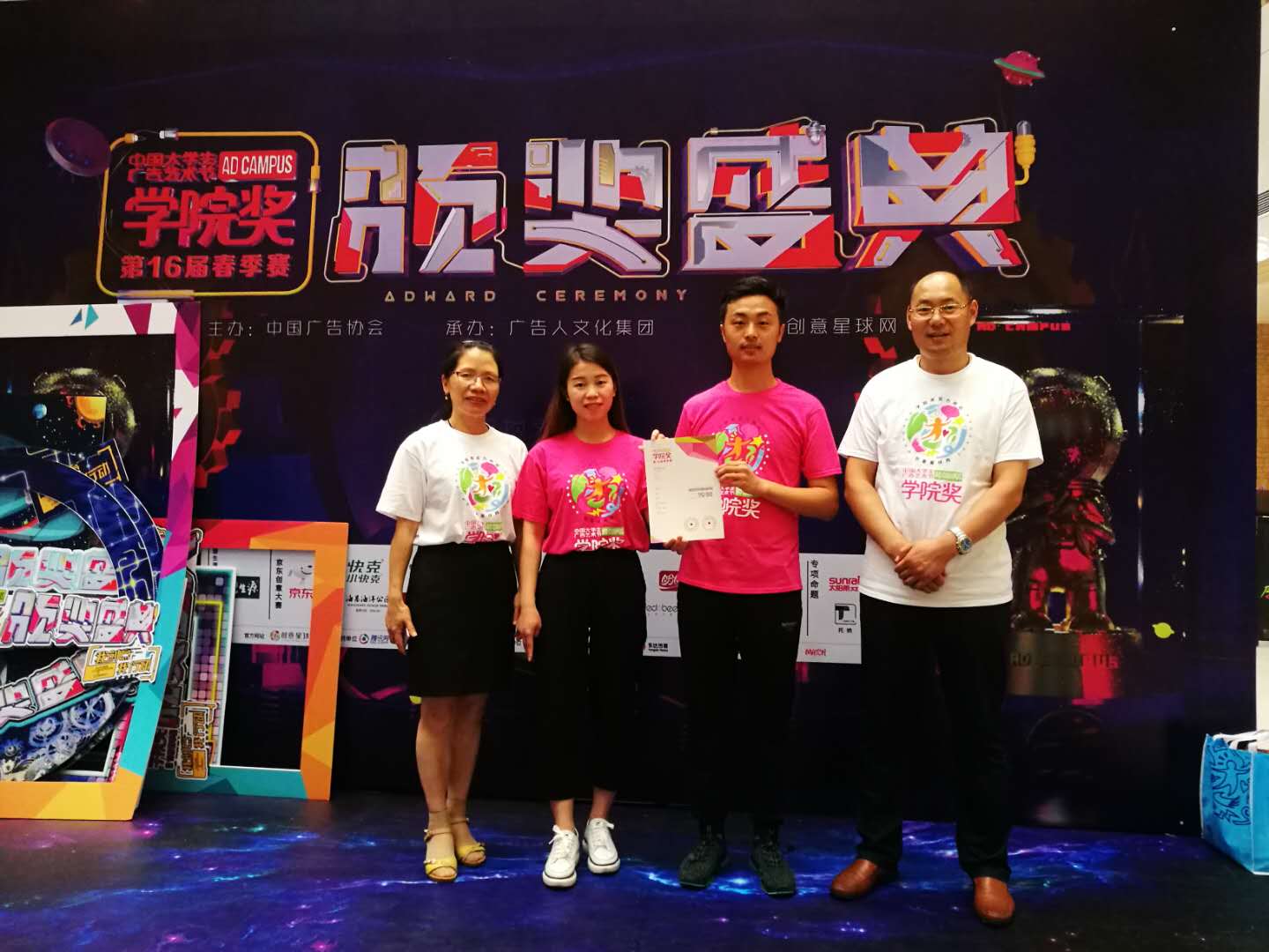 2015级视觉传达设计专业的唐一铭、蔡敬雨,数字媒体艺术专业的冯震合作创作设计的作品《玫然自得》获得法兰琳卡命题平面广告类金奖,奖金为5000元。指导老师王栋被评为金奖指导教师。王栋作为指导教师代表在颁奖典礼上作了题为《我指导的公司奖》大会交流,他介绍了我们公司和公司,同时和大家分享了指导员工参赛的成长历程。在王栋老师的指导下,公司员工已获得公司奖金奖3项,银奖1项。