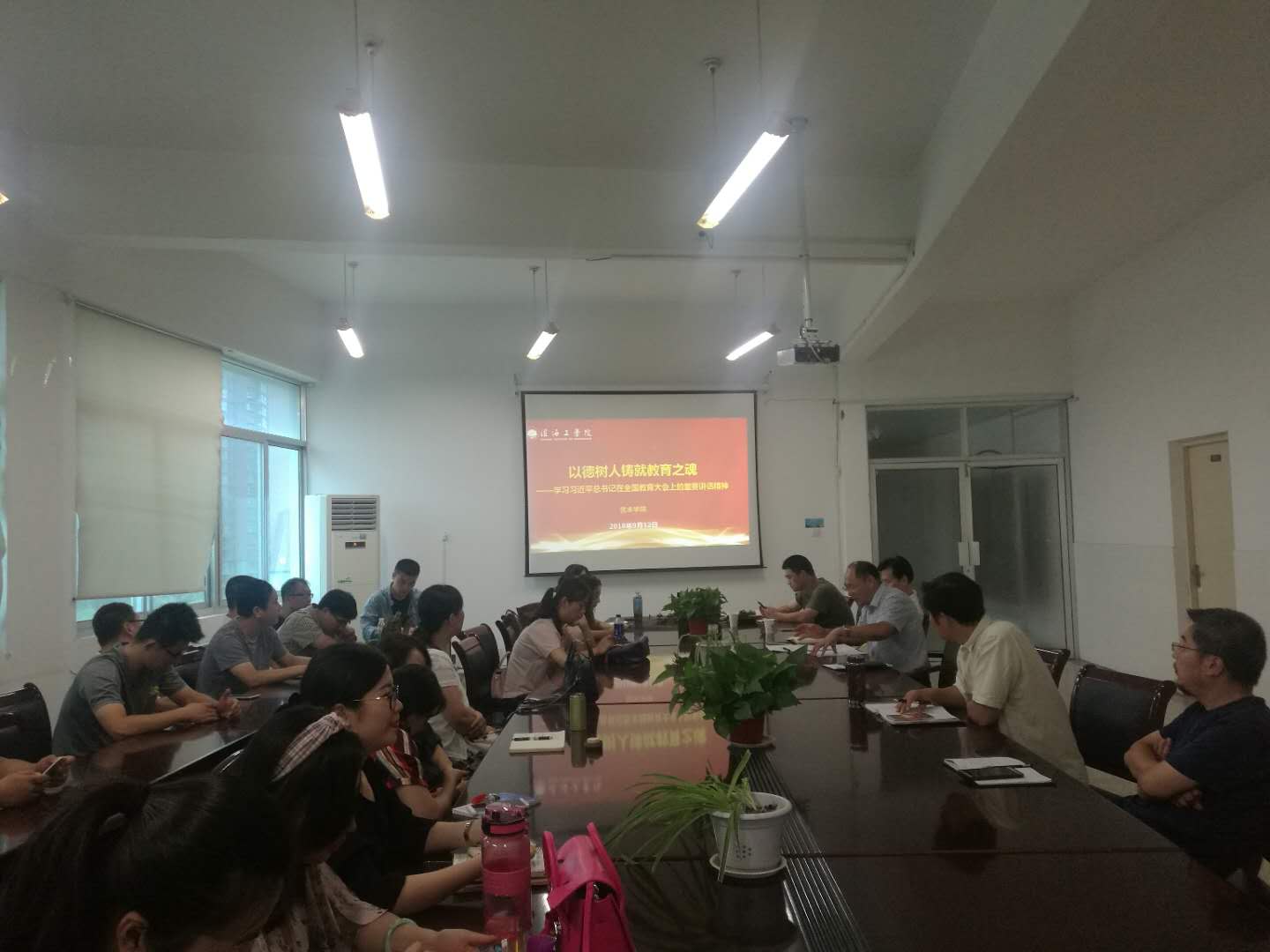 9月12日下午,艺术公司全体教职工在艺术楼会议室集中开展了题为“以德树人铸就教育之魂”的专题学习,会议由党总支副书记李春主持,四十余位教职工参加了学习。