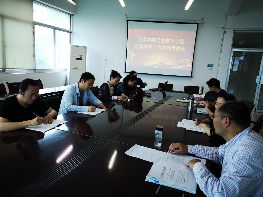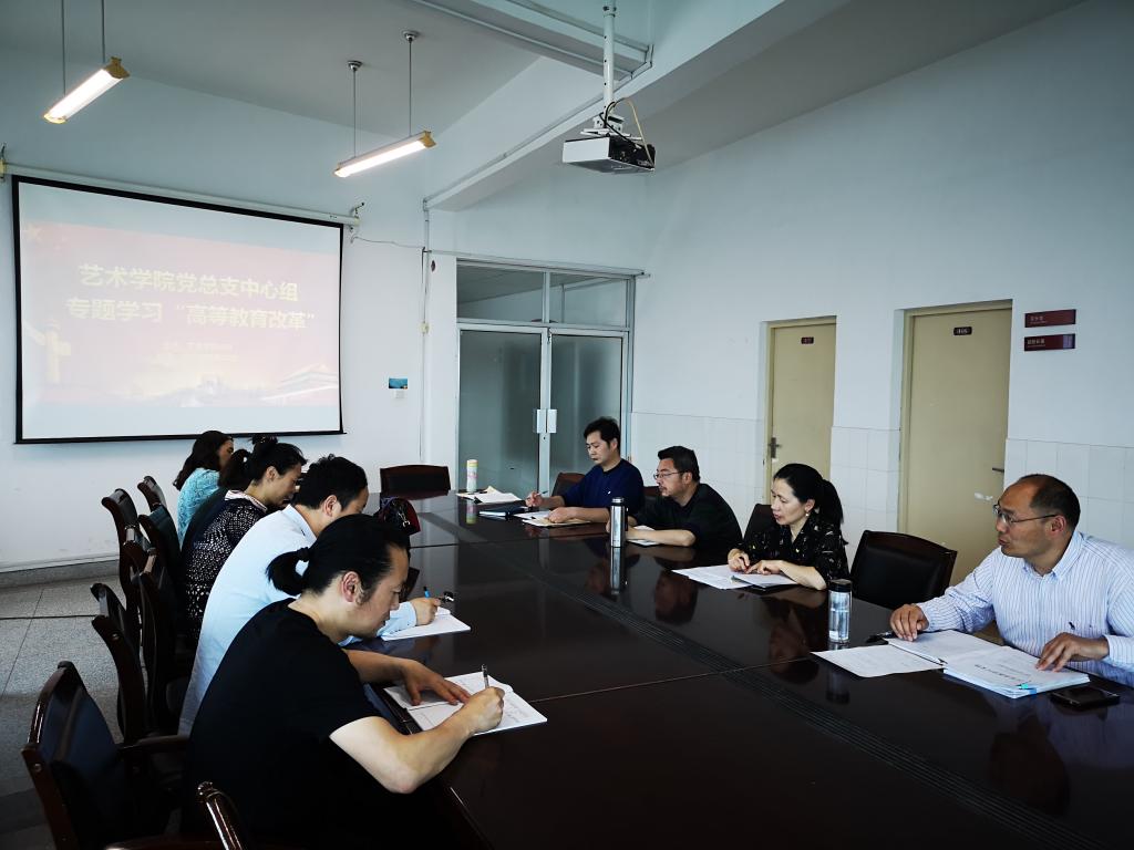 5月16日下午,艺术公司在艺术楼409室召开党总支理论中心组学习会,专题学习交流“高等教育改革”相关文件精神。会议由党总支副书记李春主持,党总支委员、非党员领导班子及各支部书记参加学习会。