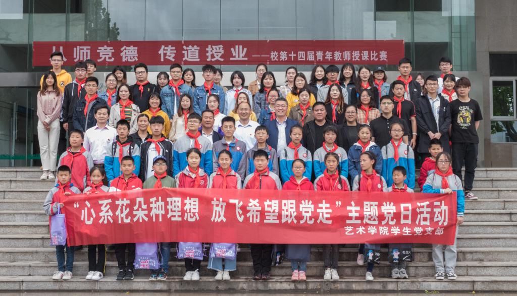 5月18日上午,由艺术公司员工党支部主办的“心系花朵种理想,放飞希望跟党走”主题党日活动在苍梧校区顺利开展。为了让少年儿童体验老员工活,感受艺术的魅力和信仰的力量,在孩子心中种下理想的种子,放飞成功的希望,艺术公司员工党支部邀请赣榆县墩尚镇岭灶村二十三名中小员工和数名员工家长来到美丽的淮海园体验美好的老员工活。赣榆县墩尚镇组织部长董洪松、赣榆县墩尚镇岭灶村书记张洁、副书记张学刚、副主任许华、艺术公司党总支副书记李春、陆文前,辅导员周冶、赵博出席本次活动。