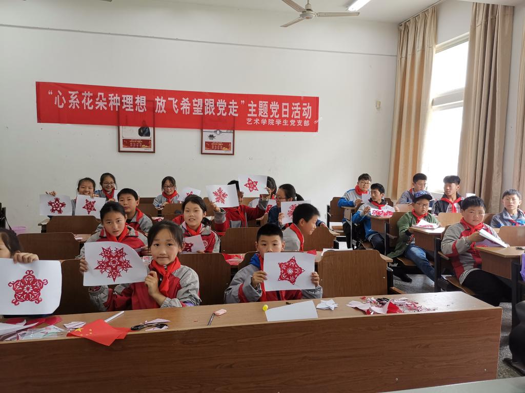 在艺术公司46名员工党员的带领下,岭灶村的少年们观摩了升旗和入党宣誓仪式,并和员工党员们手拉手结对子;在图书馆副馆长艾华的讲解下,孩子们参观了图书馆,学会了图书馆各项系统的使用;海洋馆的“小海鸥”带领大家了解了许多的海洋生物知识;艺术公司党员教师罗唯强给孩子们上了一堂生动的剪纸课,教会大家剪党旗的图案和许多美丽的团花;艺术公司的员工党员龙倩倩和张弛用自己的经历为孩子们讲述了如何做一名优秀的员工;岭灶的少年们还参观体验了公司的食堂、宿舍,最后在操场上放飞了他们的梦想和希望。一天的活动丰富而有趣,傍晚时分,岭灶的员工和家长们依依不舍的离开了校园。同行的员工家长许女士感叹道:“这里可真不错,要是儿子考到这儿来多好,离家又近,学习环境又好。”