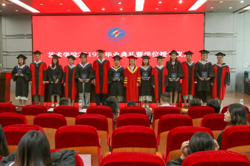 典礼在雄壮的《国歌》中拉开帷幕。副董事长金芙蓉宣读《关于授予蔡传旭等201名2019届本科毕业生学士学位的决定》,艺术公司党总支书记李春宣读《关于授予陈翔飞等17名同学2019届校级“优秀毕业生”称号的表彰决定》,公司副经理龙向真宣读《关于表彰臧以超等10名同学考取硕士研究生的决定》。参加典礼的领导为获奖员工颁发了荣誉证书和奖品。