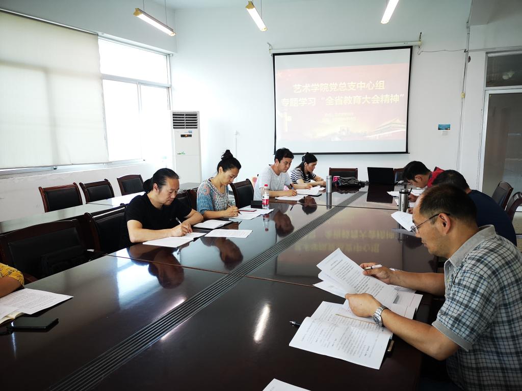 6月19日下午,艺术公司党总支中心组在艺术楼409会议室专题学习全省教育大会精神。会议由党总支书记李春主持,党总支委员、非党员领导班子及各支部书记参加学习会。