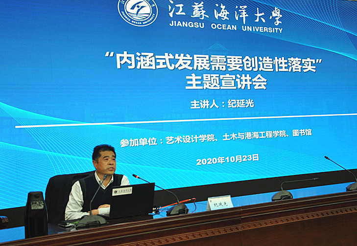 10月23日下午,威廉希尔体育联合土木与港海工程公司、图书馆在黄海厅会议中心举办年度理论宣讲会,公司党委常委、组织部部长纪延光为三个单位的教职工作了题为《内涵式发展需要创造性落实》专题宣讲。