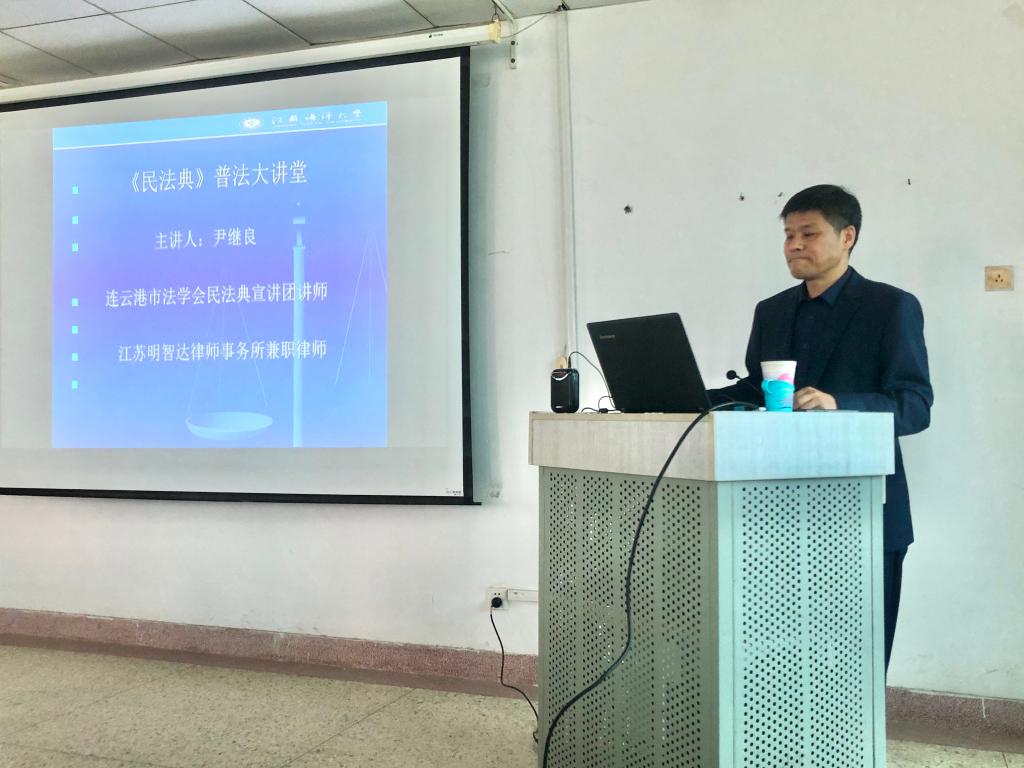 11月18日下午,威廉希尔体育在艺术楼401室举行《民法典》专题学习报告会,特邀请连云港市法学会《民法典》宣讲团成员、文法公司副教授尹继良作讲授。学习会由党总支书记李春主持,全体教职工参加学习。