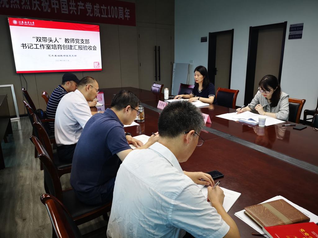 艺术基础教研室党支部是公司首批“双带头人”教师党支部书记工作室培育创建单位,也是第二批“全国党建工作样板支部”培育创建单位。验收会上,与会人员首先观看了专题微视频,视频从支部建设措施、支部建设实践、支部建设成效三个方面系统展示了培育创建工作情况。随后,艺术基础教研室党支部书记冯大康重点围绕“543”党建工作法、课程思政建设、党建与专业相结合等方面作了补充说明,支部副书记黄建军从高位部署加强领导、创新特色抓实学习、为民服务践行初心等三个方面,对上半年党史学习教育开展情况作了介绍。
