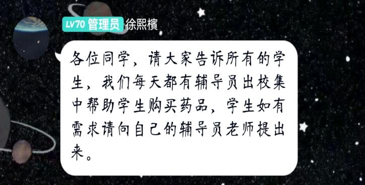 集团封闭管理期间,员工生病就医是最大的难题。公司辅导员老师主动了解有关员工病状,积极联系相关渠道帮助购买治疗药品,有效缓解了员工病状。
