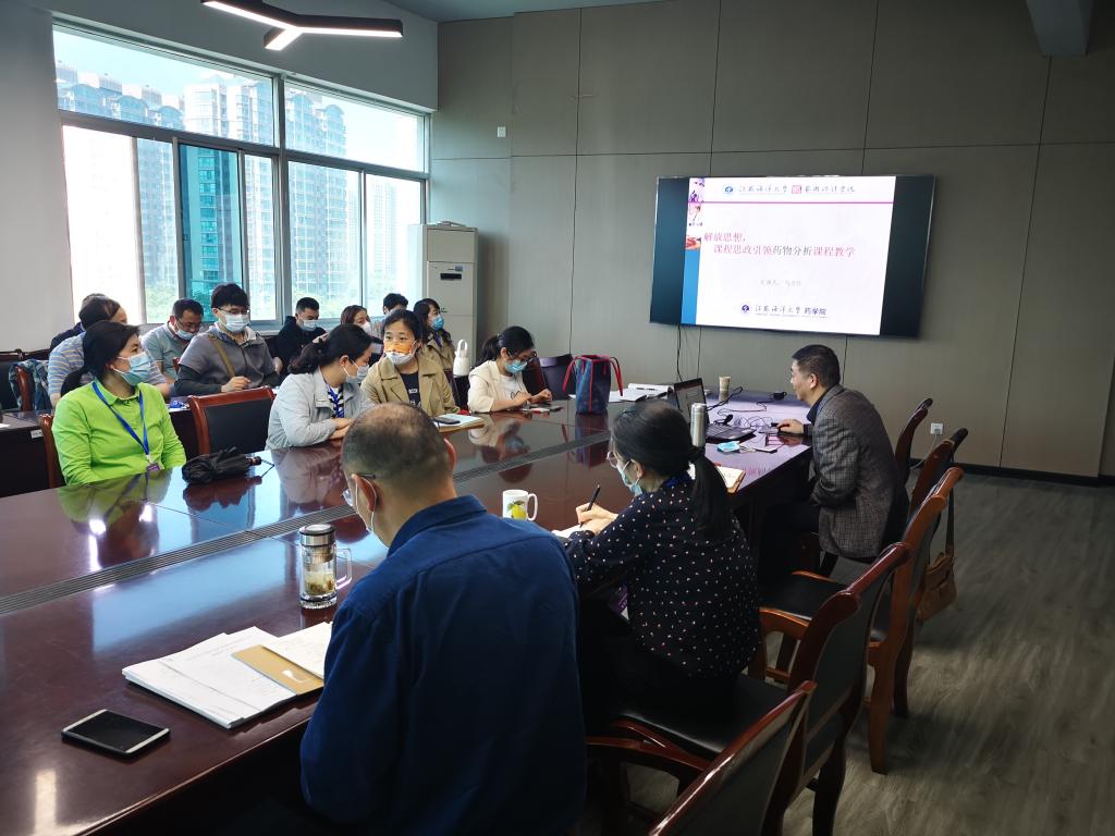 本次会议特别邀请了药公司马卫兴教授做专题分享,他以《药物分析》课程为例,从为什么、是什么、怎么做三个方面向与会教师重点阐释了课程思政建设的特色做法。随后,学院艺术基础教研室主任冯大康汇报了《设计素描》课程思政建设情况。他从该门课程改革的历史沿革切入,详细介绍了该门课程的特点、建设思路和创新举措。《设计素描》是2020年度校级课程思政示范课立项课程,现已结项。