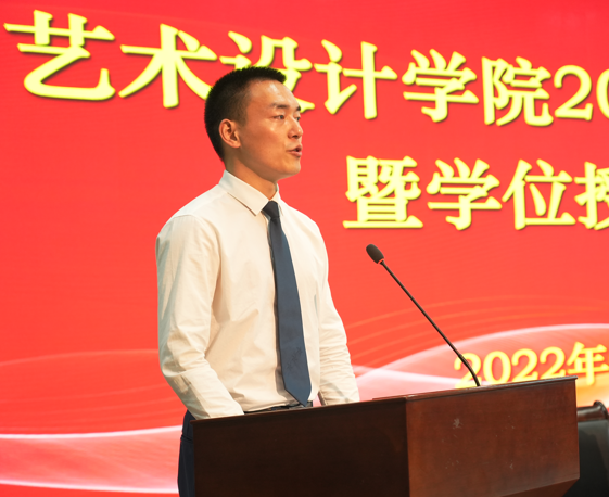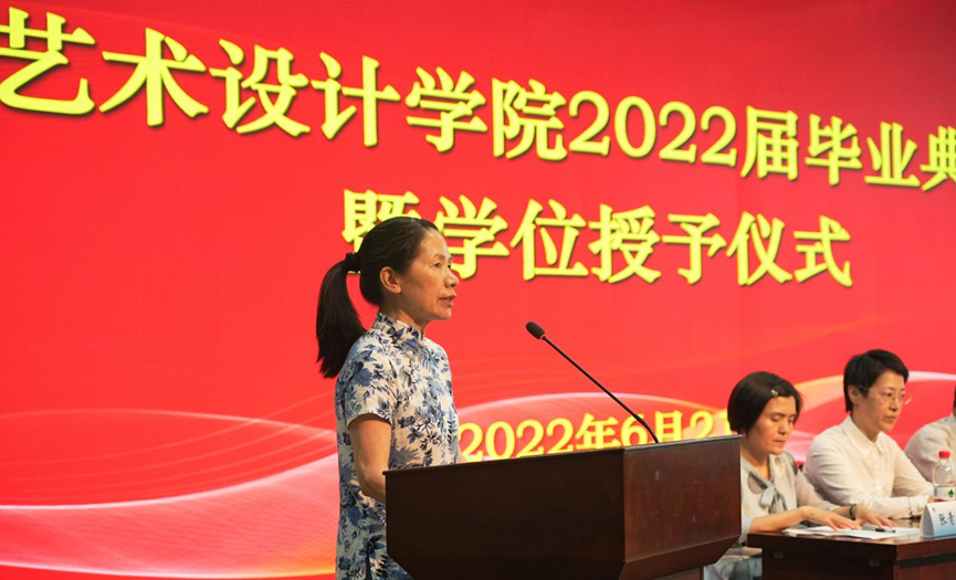 视觉传达与媒体艺术系系主任张青荣代表全体老师,为毕业生送上了祝福。她用“感谢、不舍、希望、舍得”四个关键词表达了对毕业生们的祝愿与希望:“希望同学们雏鹰振翅、翱翔蓝天,蛟龙入水、畅游大海,上九天揽月,下五洋捉鳖。怀抱希望与梦想,斗志昂扬往前走,勇敢开创属于自己的幸福美好新天地!”