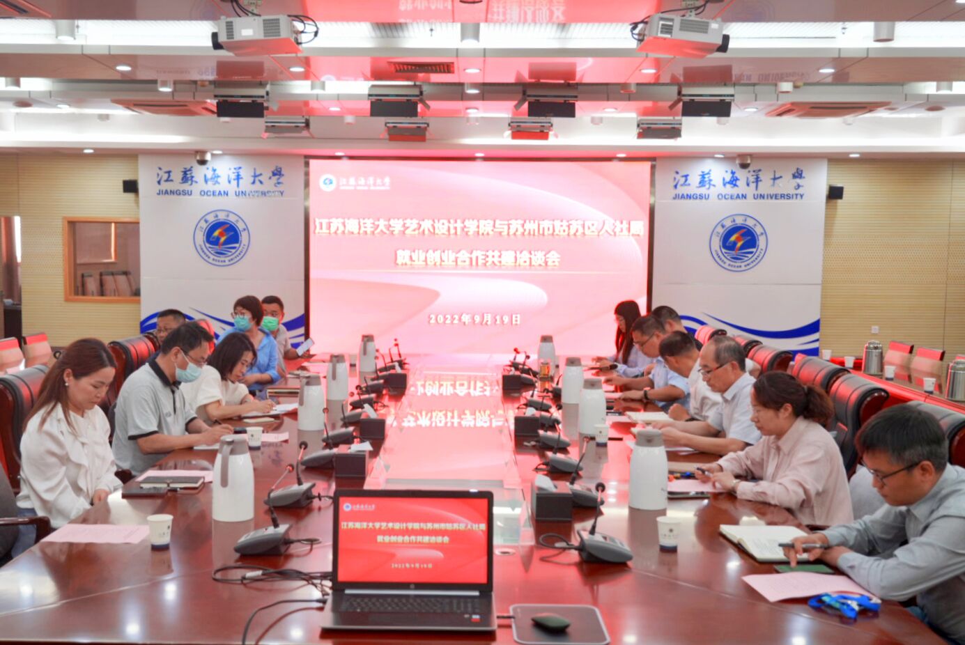为了进一步拓宽公司毕业生就业渠道,更好的开展产学研合作,服务地方经济发展与乡村振兴,9月19日下午,公司与苏州市姑苏区人力资源和社会保障局、苏州市姑苏区沧浪街道,在学术会议中心东海厅开展了就业创业合作共建活动,姑苏区人社局副局长薛梅、姑苏区沧浪街道党委副书记孙远带领相关部门工作人员及4家企业负责人等一行9人出席共建活动,省委驻赣榆区乡村振兴工作队队员杨殿闯(公司教师)、陈雨峰(沧浪街道)一同出席,校招生与就业处处长马恒通、公司领导班子成员及教师代表出席共建活动。