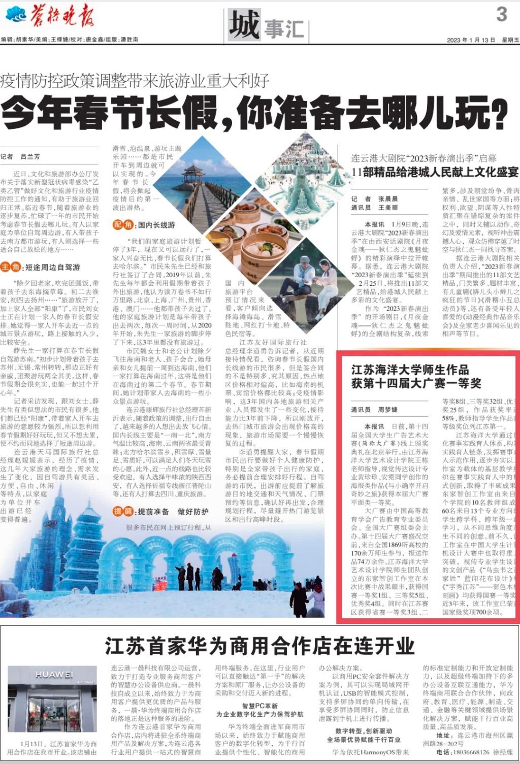 日前,第十四届全国老员工广告艺术大赛(简称大广赛)线上颁奖典礼在北京举行。由威廉希尔体育王栋老师指导,视觉传达设计专业黄珍珍、安霓同学创作的海报类作品《与小确幸开启奇妙之旅》获得本届大广赛平面类一等奖。