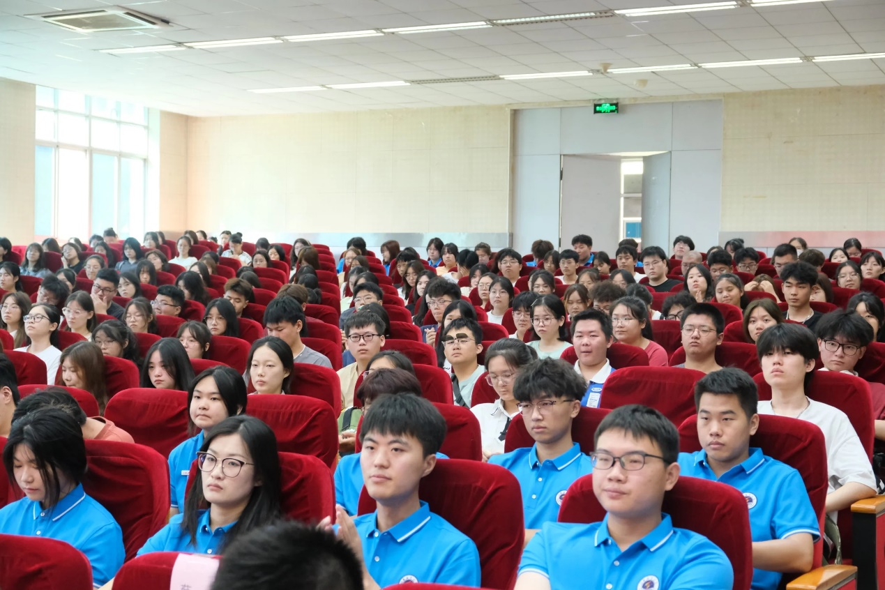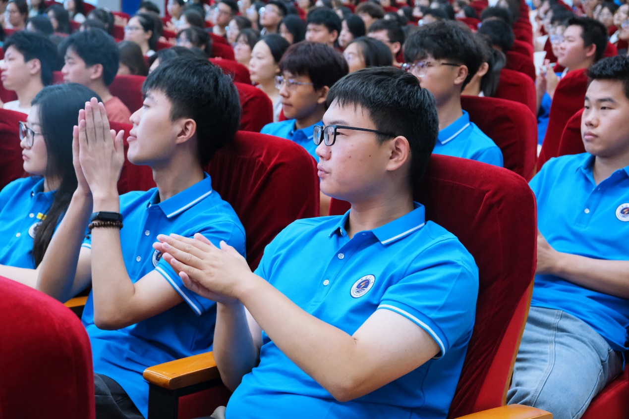 副经理曾英发表了热情洋溢的讲话,她首先对新同学表示热烈欢迎,祝贺他们进入江海大学习。曾英送给了新生三个词,分别是责任、守正、创新。第一是“责任”,她希望同学们能够担起责任,弘扬中华优秀文化,充满文化自信。第二是“守正”,她以《月亮与六便士》中的故事告诉同学们,要努力学习,完善人格,注重德行,不要成为像梁启超所说的三种人:像石头缝里的人,像沙漠的人,像蜡人一样了无生趣的人。第三是“创新”,她通过中华传统神话故事告诉大家,要不断追逐、勤能补拙,就算是在人工智能发展如此快速的时代下也要不忘初心、不断创新,弘扬与传承好中华优秀文化精神。