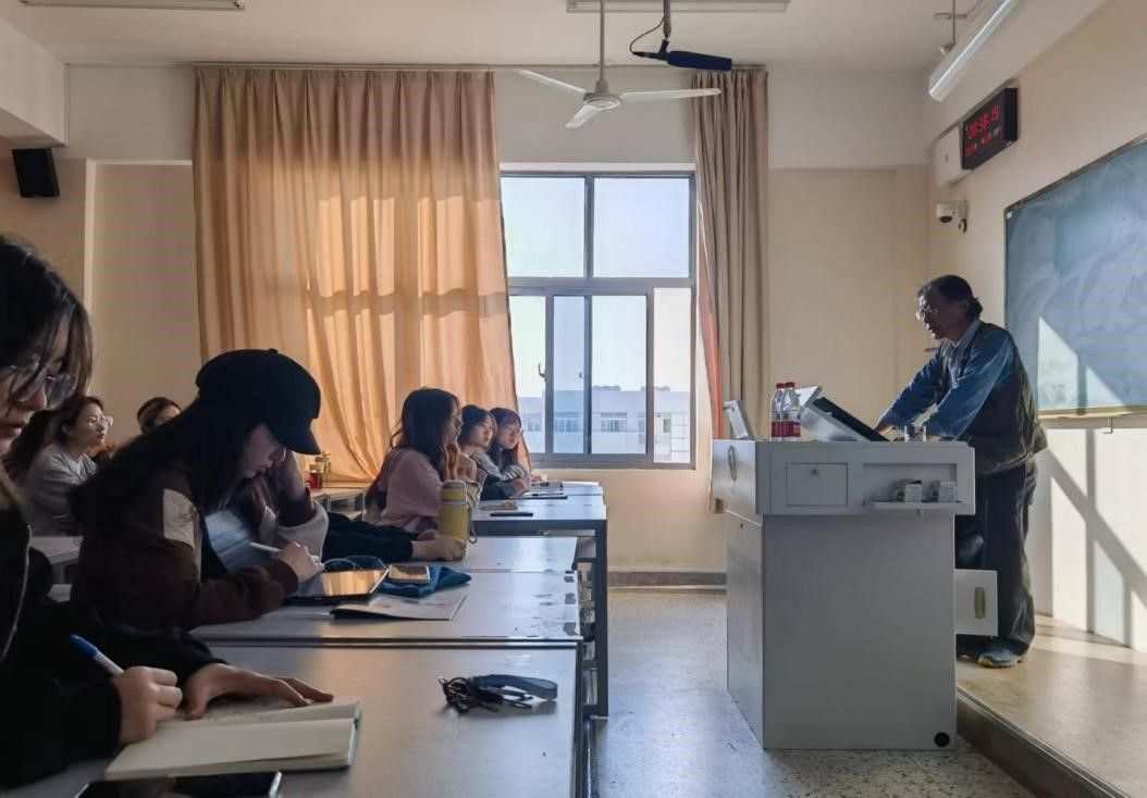 11月2日,在文华楼507教室,连云港市重点文物保护研究所原所长高伟为同学们带来了“漫谈连云港历史文化——海州名胜古迹与名人精选鉴赏”的讲座,他按照时间顺序给同学们讲解了连云港具有代表性的历史遗迹的成因、年代背景、文化背景,并结合自身经历讲述了文物保护过程中的一些趣事,同学们听得津津有味。