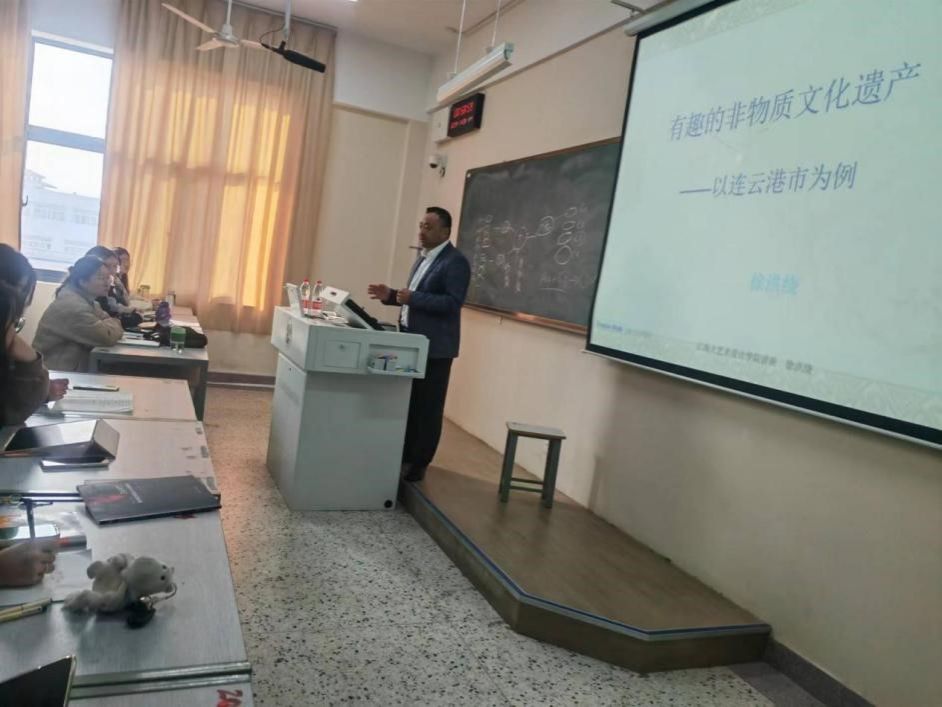 11月9日,连云港市民俗博物馆馆长、连云港市文广新局非遗保护中心副主任徐洪绕在文华楼507教室进行了“有趣的连云港市非物质文化遗产”讲座。徐馆长首先介绍了非物质文化遗产的概念,强调了非遗的独特性和传承的重要性,随后,他结合自己的经历给大家讲述了非遗调研和收集的方法。