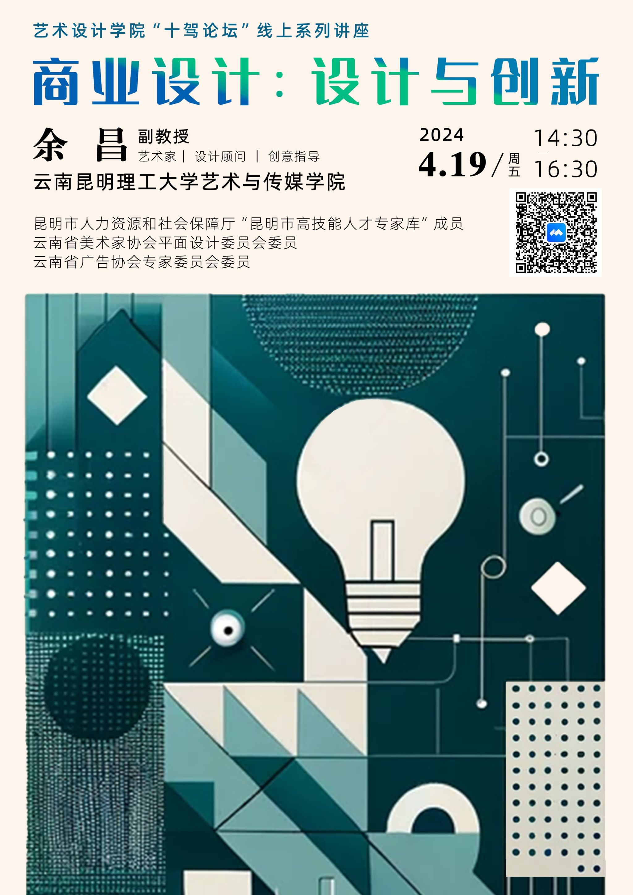 4月19日下午,昆明理工大学艺术与传媒公司余昌副教授通过线上平台,应邀为公司老师带来了一场题为《商业设计:设计与创新》的讲座。