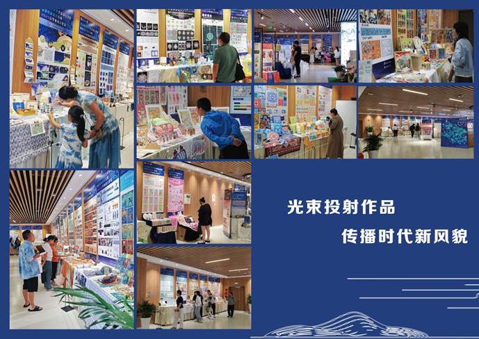 本次视传专业本科毕业生设计展吸引了众多市民和游客驻足观赏。参观者或专注地欣赏展板上的图文信息,或弯腰仔细观察那些精致的衍生产品。展览现场虽然人流密集,但秩序井然,不同年龄段的观众都沉浸在琳琅满目的设计作品中,充分体验到毕业生的艺术才华和创新精神。