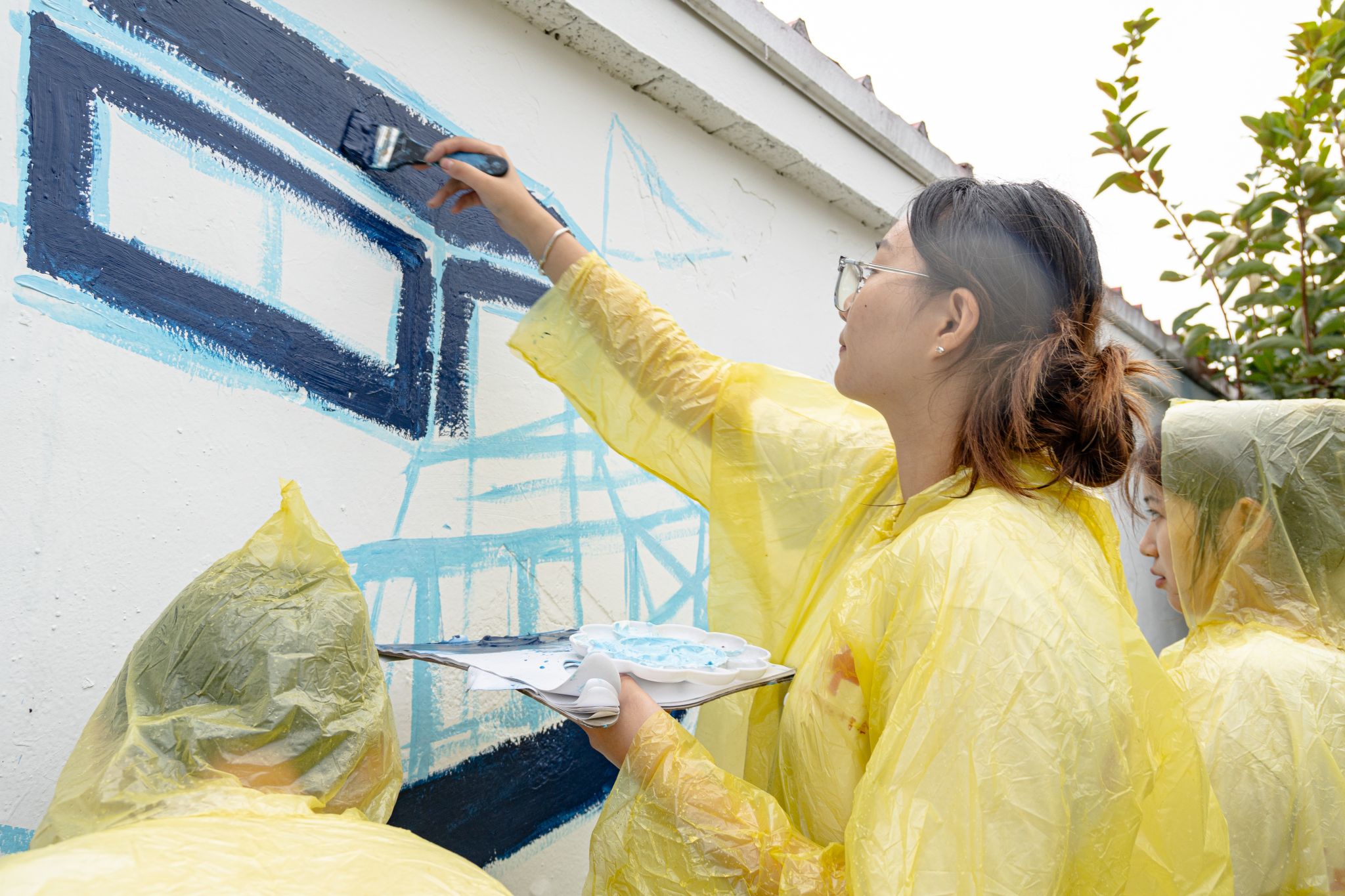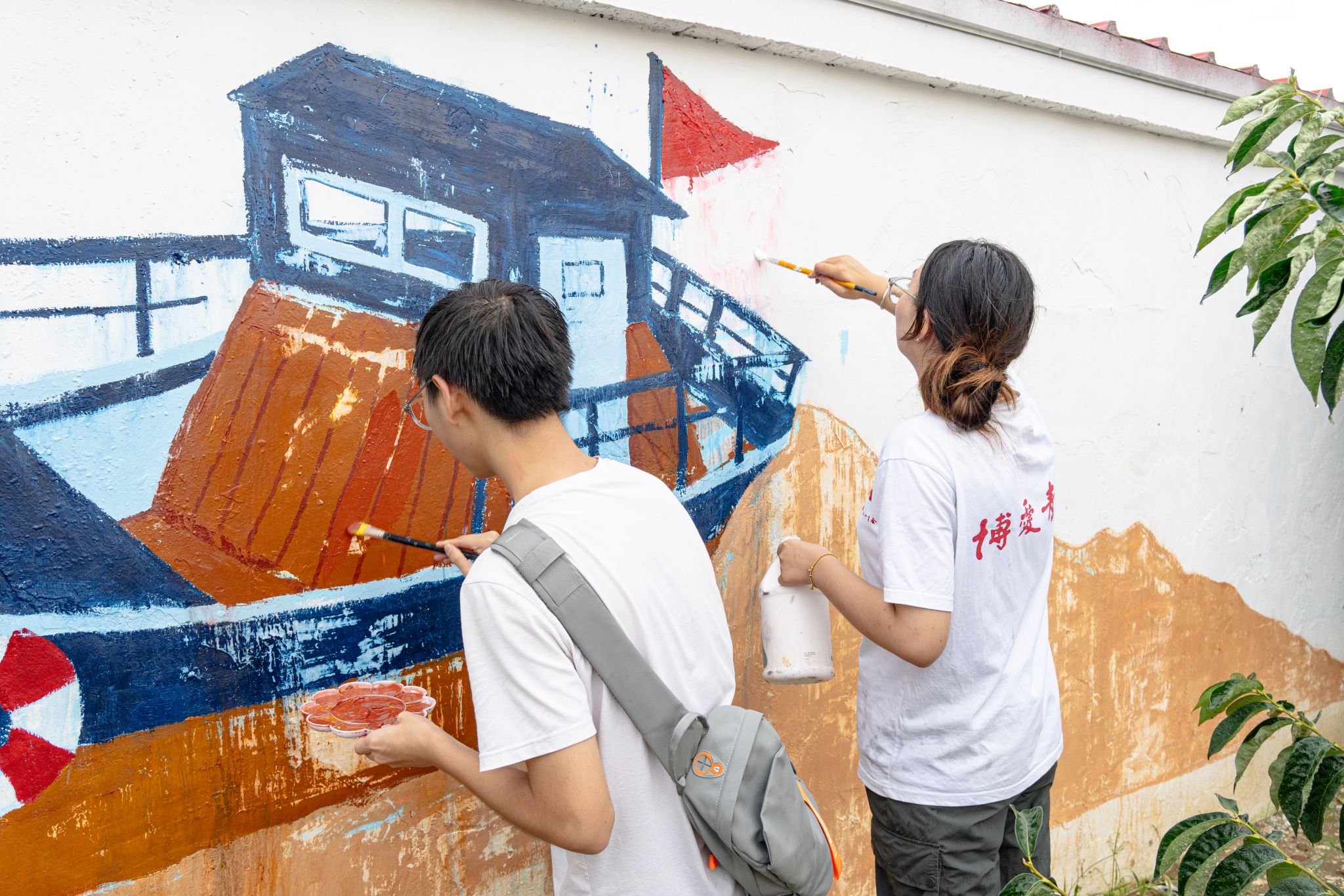 团队坚持调研先行,将实地考察作为制定实践方案的重要依据。在确定海头镇梁沙村为实践地点后,团队通过前期文献检索初步了解到该村作为规划发展村,具有优越的地理位置和深厚的文化底蕴,与属地党群服务中心的工作人员取得联系后,队员们化身“调研员”,开展系统扎实的乡村调查。在充分调研的基础上,服务团进入墙绘创作与美育推广阶段。团队坚持“入情入理”原则,使艺术创作既美化乡村环境,又融入村民生活。