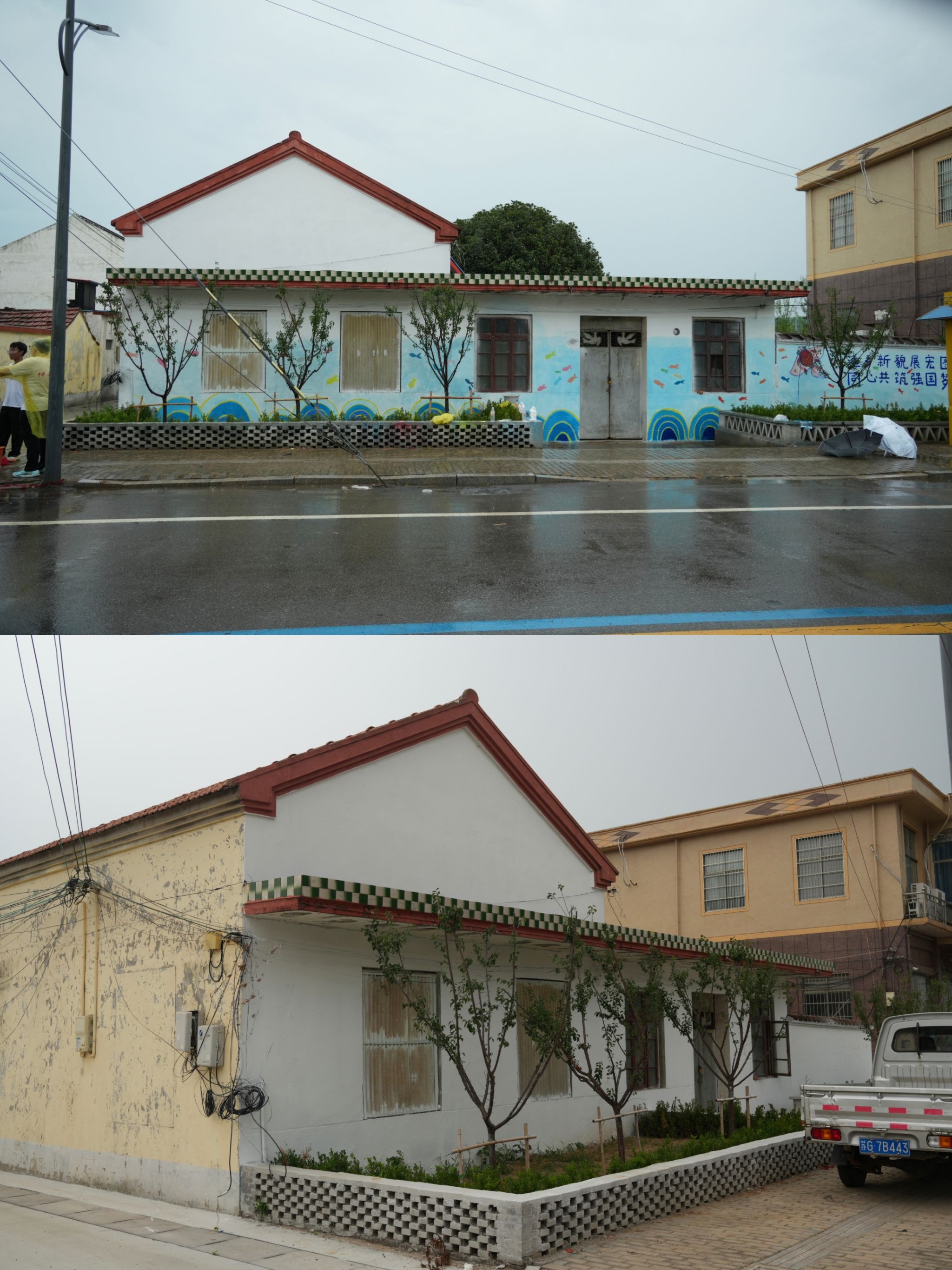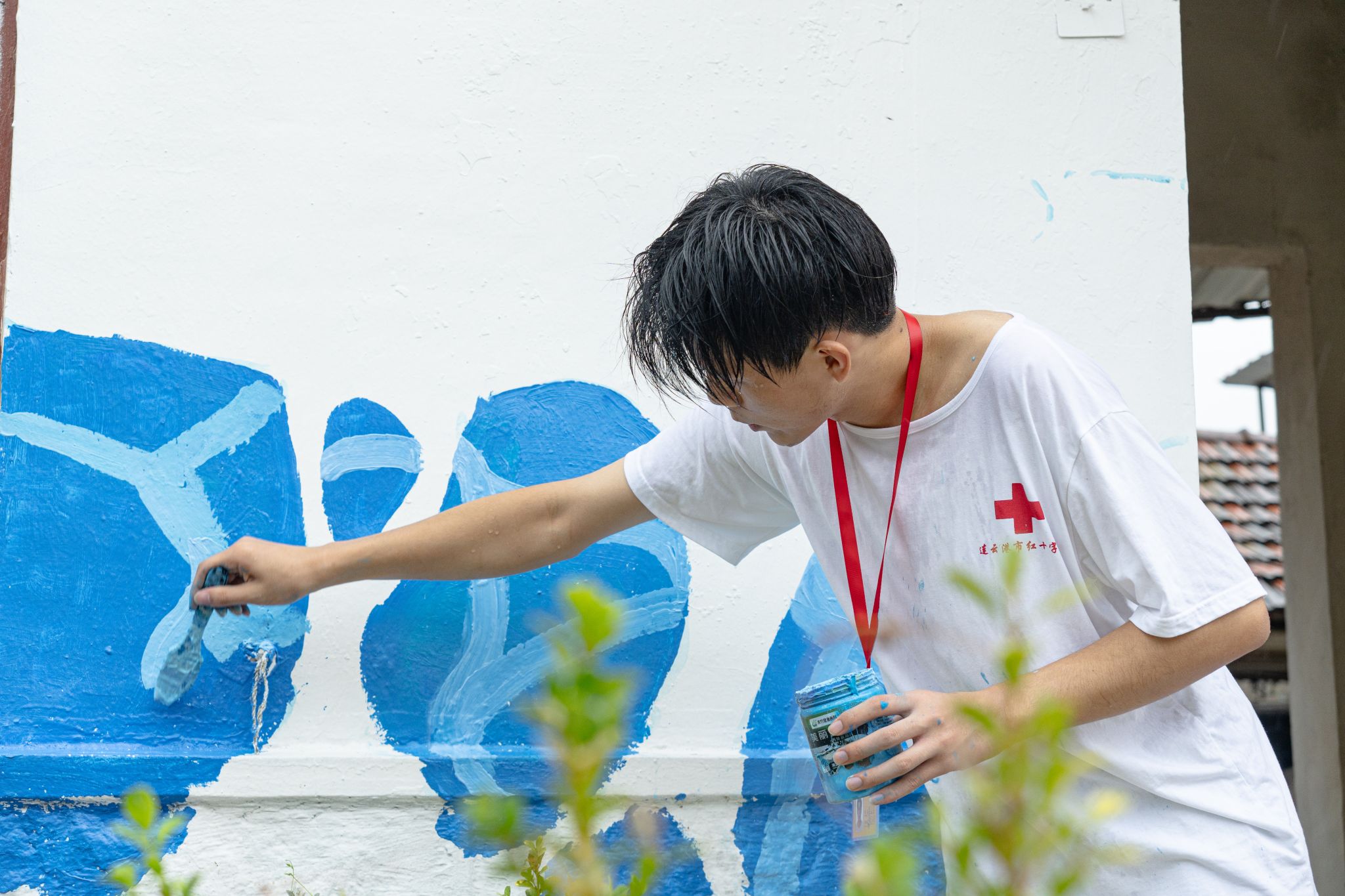 墙体创作“洒汗水”“绘丹青”—队员们克服阵雨天气,分工协作完成构图、调色、绘制等环节,三面墙体总计超200m2白墙焕然一新,成为展现乡村风貌、传播文明新风的“露天艺术馆”。