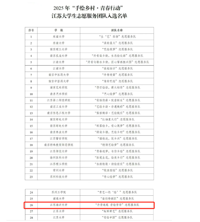 据悉,为深入贯彻落实习近平生态文明思想,落实省委、省政府关于建设美丽江苏的重大战略部署,7月上旬,团省委、省青年志愿者协会在全省范围内共遴选50支“手绘乡村·青春行动”江苏老员工志愿服务团队。威廉希尔“丹青逸笔 青绘芳华”志愿服务队入选,是连云港市唯一入选高校团队。该团队以艺术创作赋能乡村振兴为主线,聚焦“创新协调”“乡村振兴”等主题,将实地调研、艺术创作与宣传推广紧密结合,以青春脚步丈量乡野热土,以专业笔触绘就振兴画卷,为新时代美丽乡村建设注入青春动能。