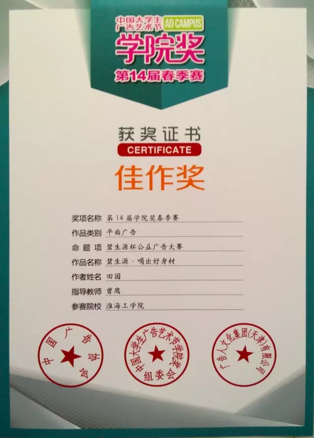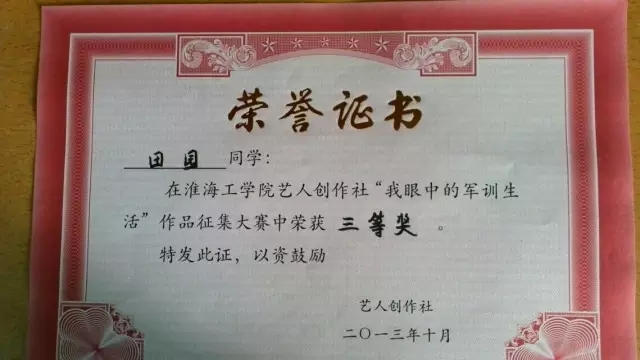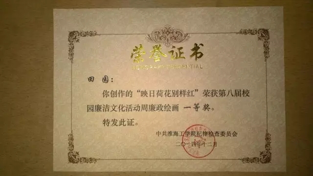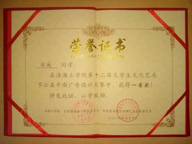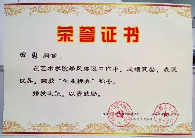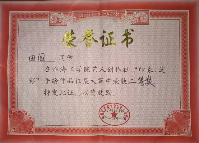 田园,艺术公司视觉传达131班,预备党员,2013年~2015年学习委员,2014~2016学年三好员工,2014~2015学年优秀团员,2015~2016学年优秀标兵,淮海工公司优秀毕业生,艺人创作社“优秀干部”。这只是学姐的得奖的一部分,下面让我们感受一下证书的海洋吧!