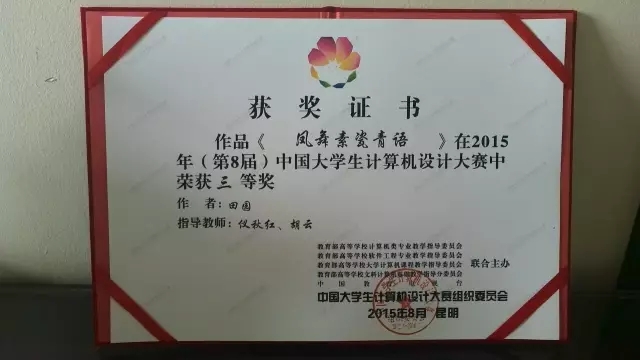 小编觉的听君一席话,胜读十年书。在大学的校园里,我们不应该把青春浪费在游戏上,虚度在宿舍中,埋没在逛街中。看了田园这篇风云人物,作为未来设计师的你们,会不会像田园这样,以赛促学,拿奖拿到手软,让大学的履历如此精彩呢?艺术公司新媒体中心定期推送风云人物,期待下一个就是你。