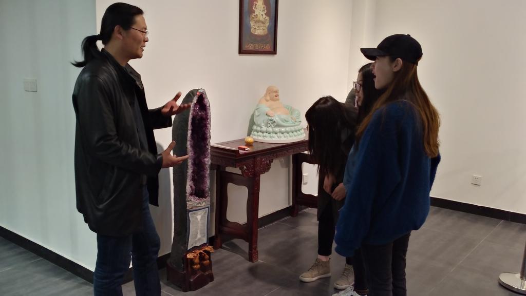 申屠留芳、李春一行来到张玉成大师的《禄源精雕艺术馆》,在玉雕大师张玉成的带领下参观艺术馆,了解艺术馆的发展、玉石加工的技巧和流程及艺术作品内涵的传统文化价值。参观之后,双方进行了座谈,张玉成向员工党员们介绍了自己的艺术之路。他告诉同学们,要熟练掌握中国的传统玉石雕刻技艺,首先要耐得住寂寞,潜心苦练基本功,往往需要十年左右的时间才能算出师,没有恒心是做不到的,同学们听后深有感触。他向同学们介绍了中国玉石雕刻的传统技法以及在世界艺术中的地位,“民族的才是世界的”,传承和发扬传统工艺,不仅是国家和艺人的责任,也是所有中国人的责任,更是树立“文化自信”的必经途径。申屠留芳经理向张玉成老师发出邀请,希望双方能深入合作,加强交流,将“工匠精神”传递给艺术学子,并寻求合适的校企合作模式。