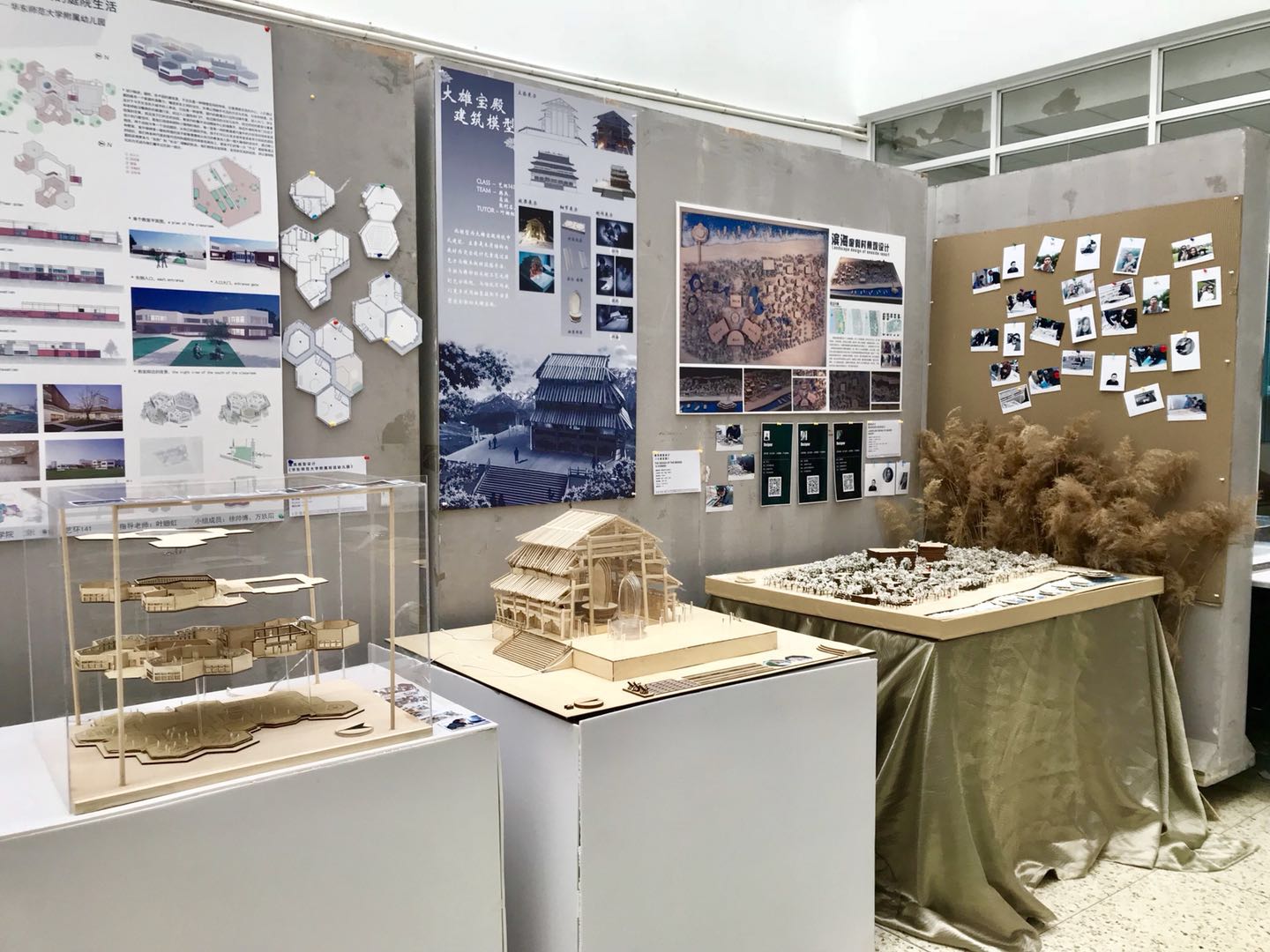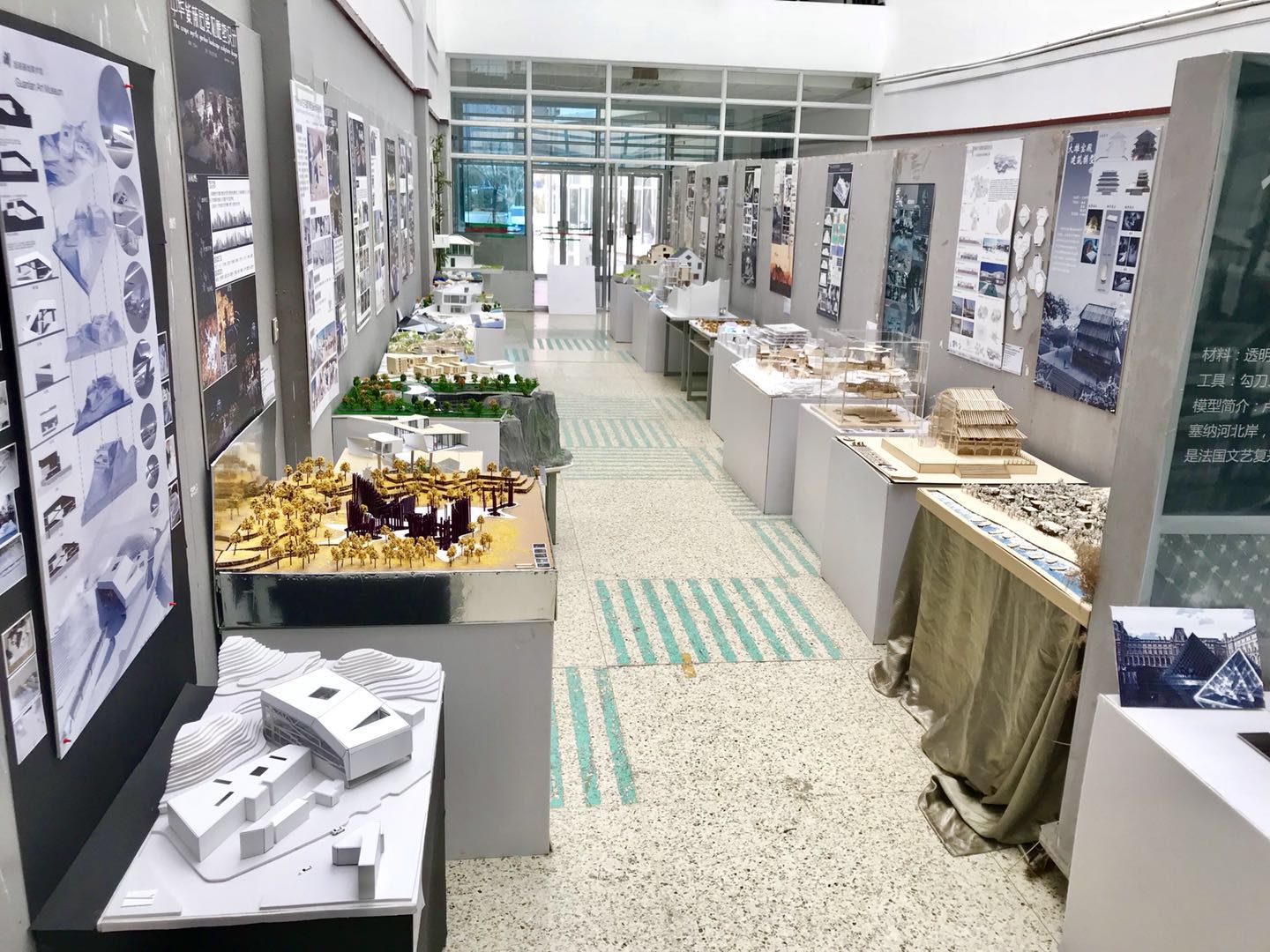本次展览的主题为《用模型思考设计》,设计作品涵盖了室内、建筑、雕塑、园林景观等多种形式,由叶姗虹、王芳龙和张景三位老师指导。这些作品员工在材料的运用、尺度关系的把握、建筑及空间环境关系的表达上都各具特点。如很多同学利用木材、有机玻璃、ABS板、PVC发泡板、水泥、铁板等各种有机化合物,以求最佳视觉效果。