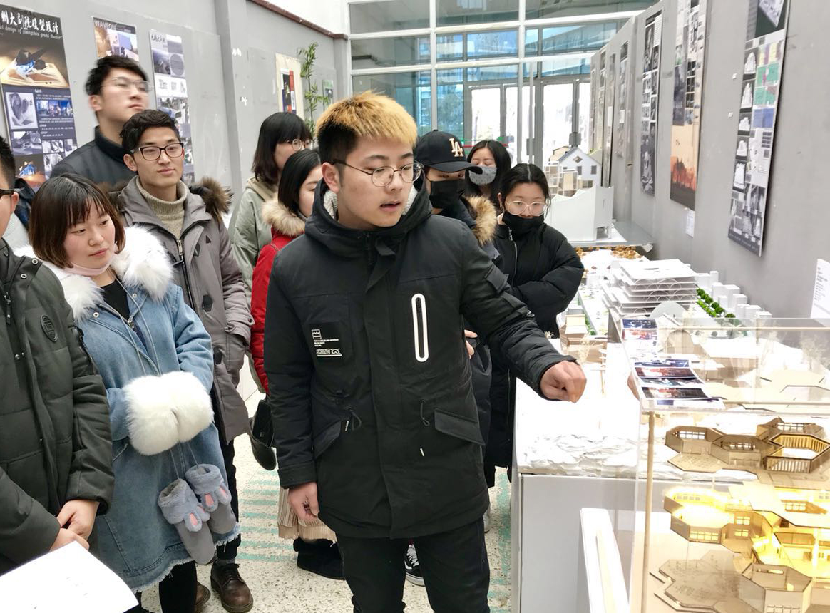 看到同学们一个个用心的模型作品,三位老师的脸上露出了欣慰的笑容。叶姗虹老师说:“设计来源于生活,生活承载着设计。宁可一思进,莫在一思停,要学会在思考中前进,只能进不能退,这就是本次主题设定的意义所在。通过概念草图——概念模型、设计方案模型——扩展模型、执行实作平面图——最终模型三个阶段的系统训练,为同学们在今后本专业上观摩研讨提供了一个更为直观的表达方式,同时也增强了在思维上的理解和认识。”王芳龙老师认为,“这次展览是给辛苦做模型的同学的一种回报,同学们通过模型制作,不仅可以把设计构思融入模型当中,也让他们体验展览的成就感,可以给下一届本专业的同学做一个总结,让他们互相学习,激发他们找到学习的动力和方向。”张景老师说:“同学们通过立体化、多维度的感受空间尺度,依据尺度数据、结构特点、材料使用等进行研究,在模拟制作过程中也会有自己灵感的启发”。