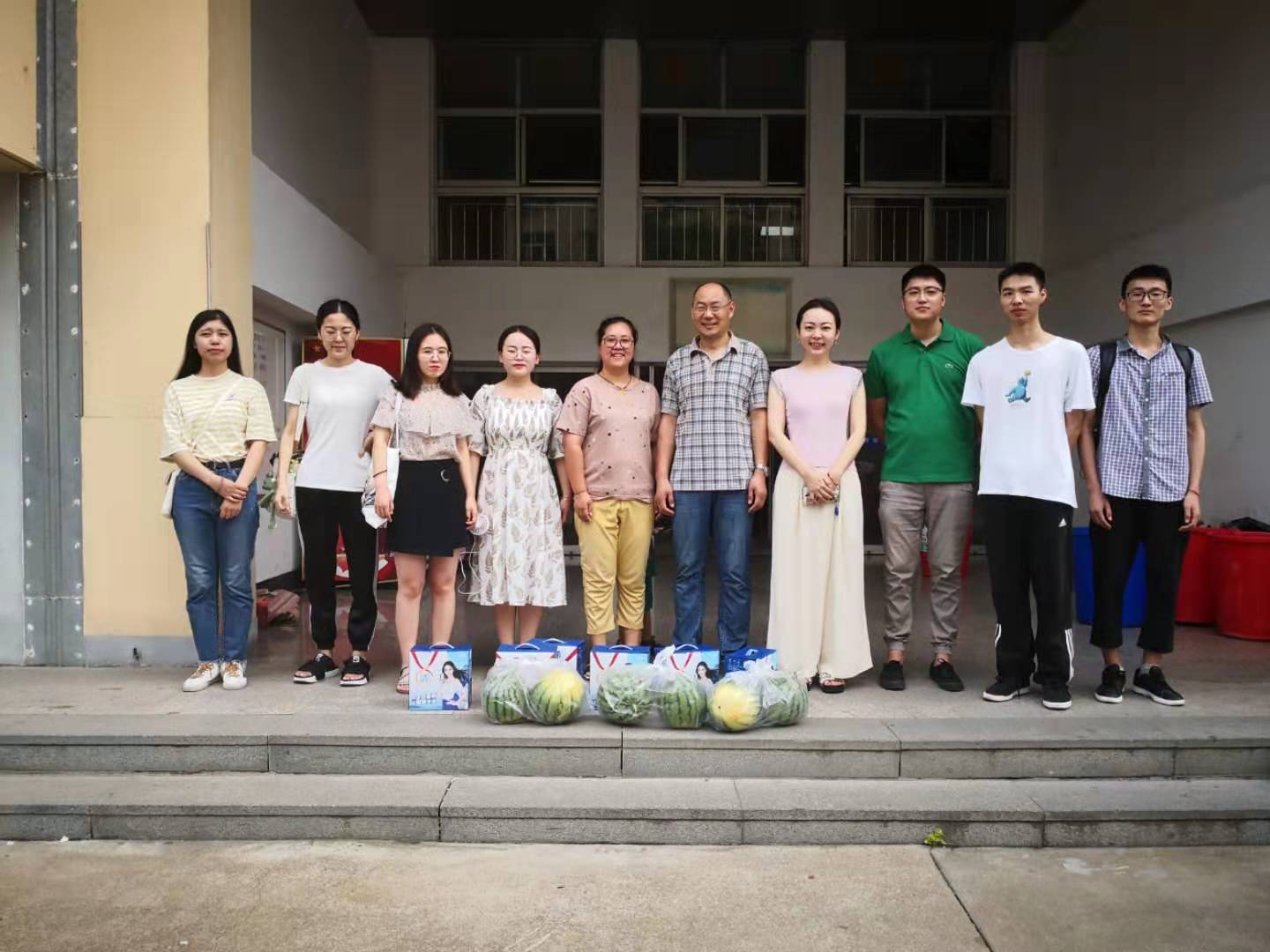 近日,连云港持续高温天气,为关心留校考研员工,7月25日上午,艺术公司党总支书记李春、副书记王琰、辅导员周冶、赵博为暑期留校考研员工送去了牛奶和西瓜等慰问品。