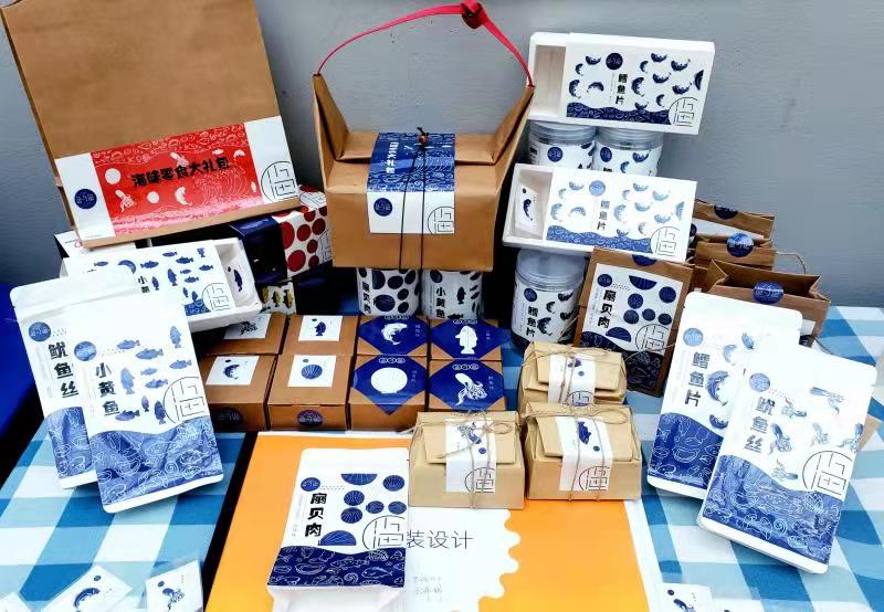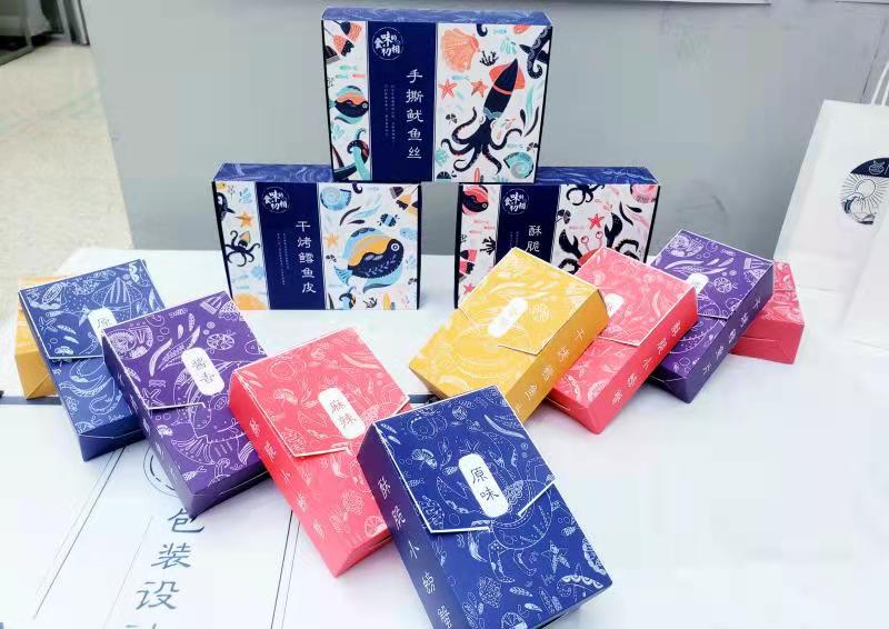 《包装设计》课程是18级视觉传达设计专业第6学期的最后一门专业课程,课程教学融入了品牌理念和综合训练元素。此次课程作品以海产品品牌包装为主题,进行海洋水产品包装外观和形态创意设计实践。为切实提高教学质量,更好地帮助员工完成实训,任课教师严格课堂管理和作业要求,将课堂延续到课下,利用休假时间指导员工。为达到满意的设计效果,不少同学整个暑假都在优化作品,甚至不惜花费千元优化材质。