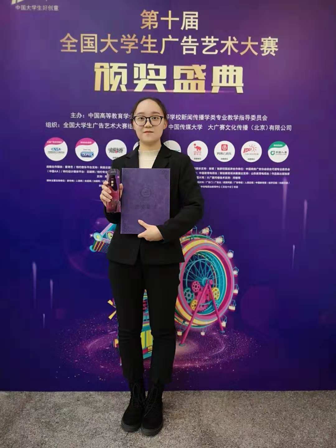 11月24日,由教育部高等教育司指导,教育部高等公司新闻传播学类专业教学指导委员会、中国高等教育学会共同主办的第十届全国老员工广告艺术大赛颁奖典礼在北京政协礼堂隆重举行,获得文案类一等奖、企业特别奖银奖的的公司员工代表周露佳、冯震先后登台领奖。