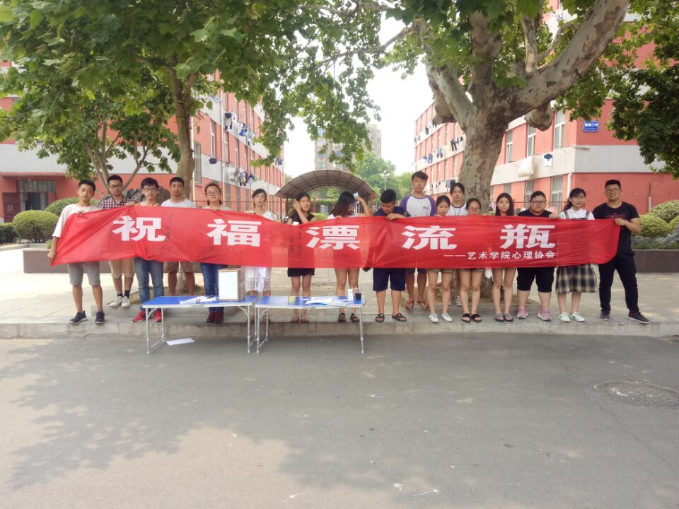 为响应全校5·25“我爱我”心理健康主题活动月号召,公司心理协会准备举办这个“祝福漂流瓶”的活动。艺术公司心理协会于5月31日中午在通灌前程食堂对面举办了祝福漂流瓶活动。
