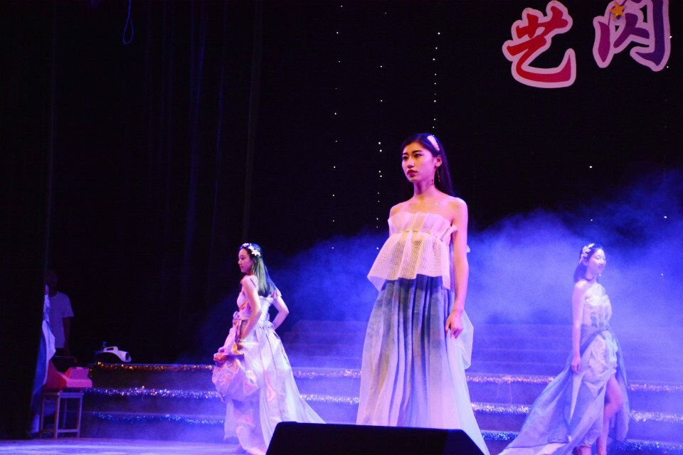 2017年艺馨艺术团继续努力,倾力设计打造了“梦中的海洋”系列原创礼服。设计和制作服装历经两个月的时间,从征集设计稿到评选出优秀作品,投入后期制作,参赛同学以小组为单位设计制作礼服,整个过程得到了艺术公司和全校爱好服装设计同学的大力支持。值得一提的是,这次服装设计的设计师们竟然大多是艺术公司大一学子,“自古英雄出少年,少年有梦在今朝!”大家把创建大学的热情转变为服装设计的才情中,礼服款式新颖多样、风格迥异,一针一线都凝聚了设计师别出心裁的创意。浅色棉纱织锦绣、海天一色梦清尘。一个个海洋图案,一处处细节设计,无不表达出艺术学子对梦中的海洋大学的期盼和想象。