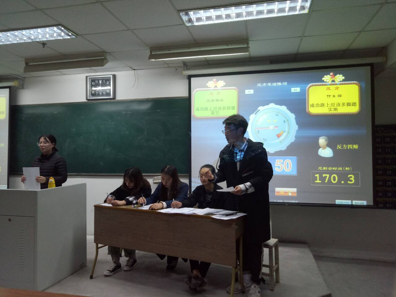 第一场辩论赛结束后,稍作休息,正方设计187“反方都不对”代表队以及反方艺术183“什么都对”代表队也开始了他们的比拼。“成功路上应该多仰望星空还是多脚踏实地”,每个人的选择不同,但我们无疑要把两者相结合起来,不能全盘否定,也不能全盘接受,否则就会成为场上各位辩手列举出来的“不幸遭遇”。