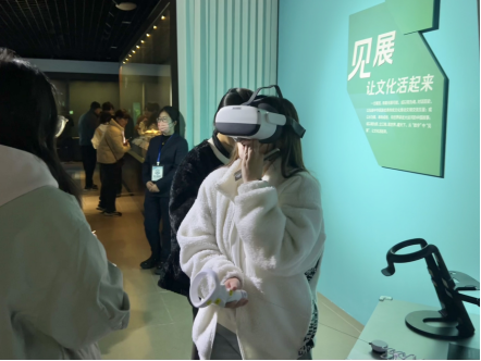参观过程中,数字媒体技术的运用也是一大亮点。在博物馆的VR虚拟观展区,党员们佩戴上VR眼镜,沉浸式体验文物之美。这一现代科技手段让党员们不仅可以“走”进展品中,探索每一件文物的细节,还能够通过虚拟场景更加深刻地感受到文化的传承与创新。