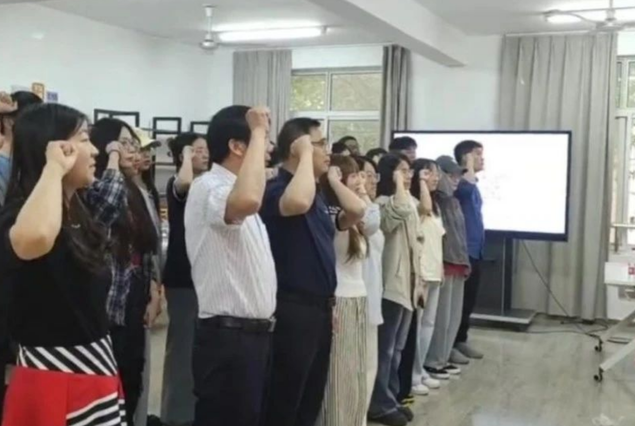 教师党员为毕业生颁发纪念品,寄托“保持热忱、担当作为”的期许。随后,全体党员重温入党誓词,在庄严承诺中强化身份意识与使命担当。