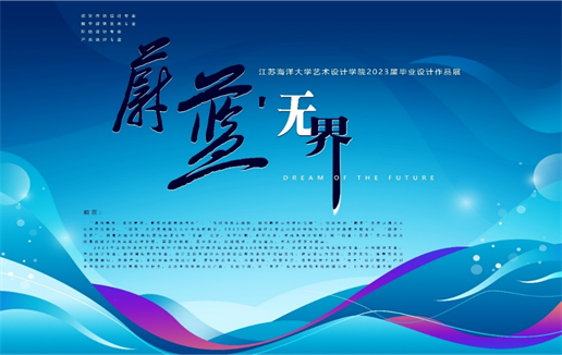 公司校歌中唱到:“海吻着天,云连着港,蔚蓝丝路意远情长”“我们奋发去远航,因为蔚蓝是不变的信仰”。本次毕业设计展以次为灵感确定了“蔚蓝·无界”的主题,既蕴含着母校对学子们的殷切希望与美好祝福,也象征着艺院学子要为实现心中的“蔚蓝”之梦,永不停歇、勇于挑战、敢于突破,追求不设极限,创造无限可能。