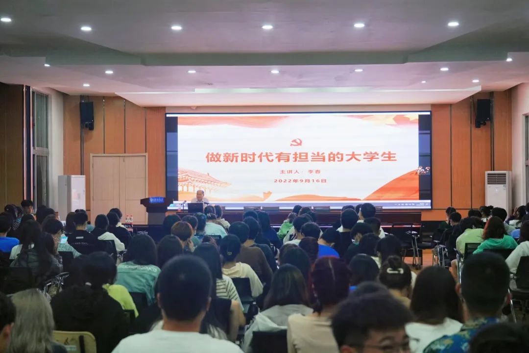 在报告会上,李书记从什么是大学、为什么要上大学、怎样上大学三个方面,教育引导新生了解大学、做好过渡,适应新的环境、新的要求。李书记通过一系列鲜活生动的事例,教育新同学们要胸怀家国、追寻梦想,要和图书馆、体育场成为好朋友,守住底线,切实学好本领,实现人生价值。要远离游戏、拒绝躺平,做一个“行动派”,充分利用好大学时光,成为一个有温度、懂情趣、会思考的人。要学会做人、做事,建立和养成正确的价值观,扣好人生的第一粒扣子。