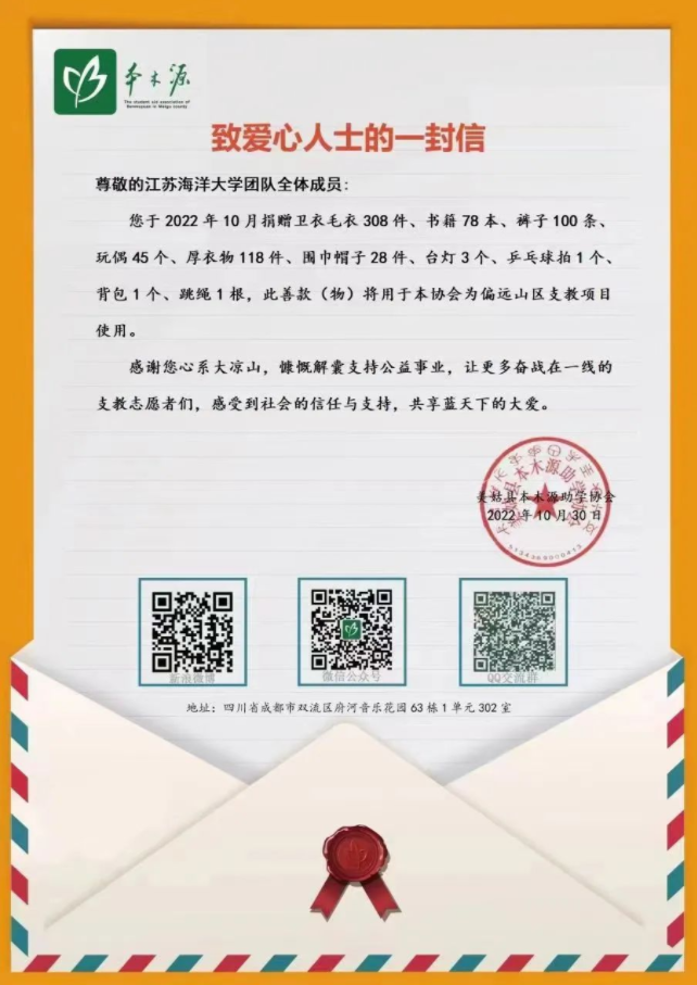 “爱心”这个词听的很多,可是当爱心以实实在在的形式出现在眼前时,又是另外一种感受。在收到同学们捐的衣物时,让人真的感觉到了沉甸甸的温暖。他们亲手为远方的同学们送上温暖,为公益事业贡献着自己的力量。
