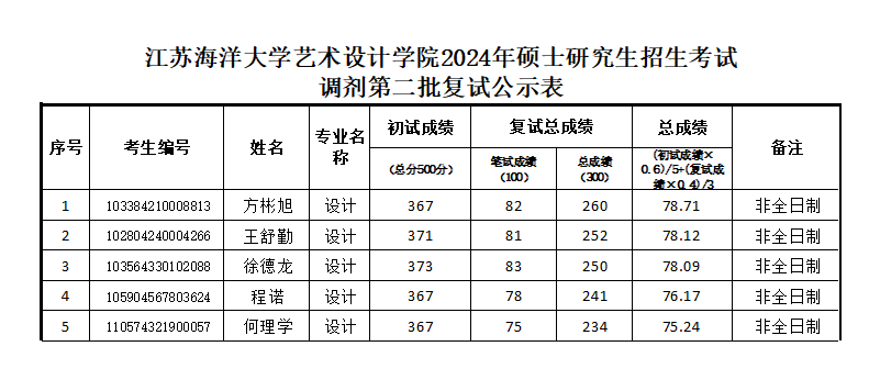 2024年硕士研究生招生考试复试成绩公示(调剂第二批)