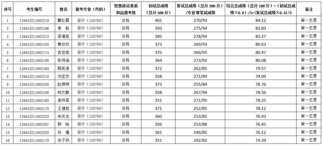 备注:(1)复试总成绩保留整数位(四舍五入);