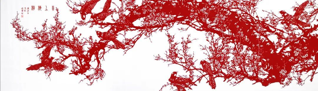 她的作品技法娴熟、画面清新、立意深刻、内涵丰富。她对传统“喜鹊登枝”图案进行现代化诠释;融入江南水乡风貌、连云港的海港元素剪纸有着浓郁的地域文化特色;“福禄寿喜”“吉祥如意”等主题剪纸作品则蕴含深厚的文化寓意;大型剪纸壁画作品则气势恢宏,场面壮观。孙洪香的剪纸细节处理精细,线条流畅,尤擅处理复杂的图案和场景,她在传统剪纸的基础上,不断创新表现手法,如使用多层剪纸技术,作品更加生动和更具雕塑感。